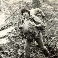 Новички ходили с брезентовыми рюкзаками. Кодовое название изделия – «рюкзак абалаковский». Рюкзаки, в общем-то, ничего. Но когда они намокали, а потом их прихватывало морозом, то наковальня «отдыхает». Сушили это изделие на солнце довольно продолжительное время. Этот рюкзак мне надоел быстро: широкий, неудобный при набивки.