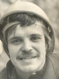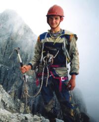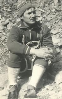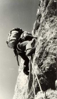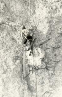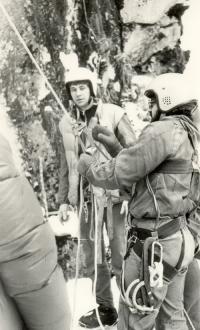 Кольцов Александр вполном комплекте скалолазного снаряжения в начале 80-ых годов. |