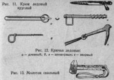 Надежно себя вели на льду. Это были укороченные в два раза ледорубы. Скорей всего идея от ледоруба. В любом случае в горах мы пользовались всегда этим снаряжением. Если не было льда, удобно было ими крючья со скал выдирать.