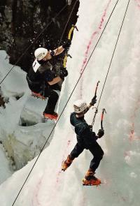 С этого момента отчетливо помню ледолазание. Ездили всю зиму по водопадам и готовили штатных спасателей. Честно, со всех спасателей запомнил только Игоря Савченко и Александра Марамчина. Они серьезно относились к ледолазанию. Александр до того заболел этим делом, что потом со своим напарником Алексеем Исаевым, приобрел импортные ледовые молотки. Занимались этим делом, как спортсмены. На уровне любителя отдыха в горах. Стали они классными ледолазами? Это вопрос.