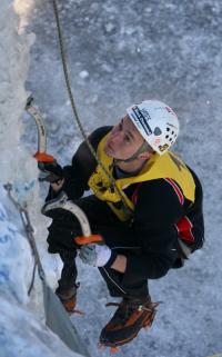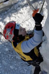 Александр Попов аттестует на льдуТОФ-а ледовые молотки Trango. |